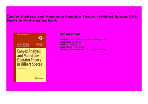 Download convex analysis and monotone operator theory in hilbert spaces cms books in mathematics Epub By Click Button. convex analysis and monotone operator theory in hilbert spaces cms books in mathematics it’s easy to recommend a new book category such as Novel, journal, comic, magazin, ect. You see it and you just know that the designer is also an author and understands the challenges involved with having a good book. You can easy klick for detailing book and you can read it online, even you can download it